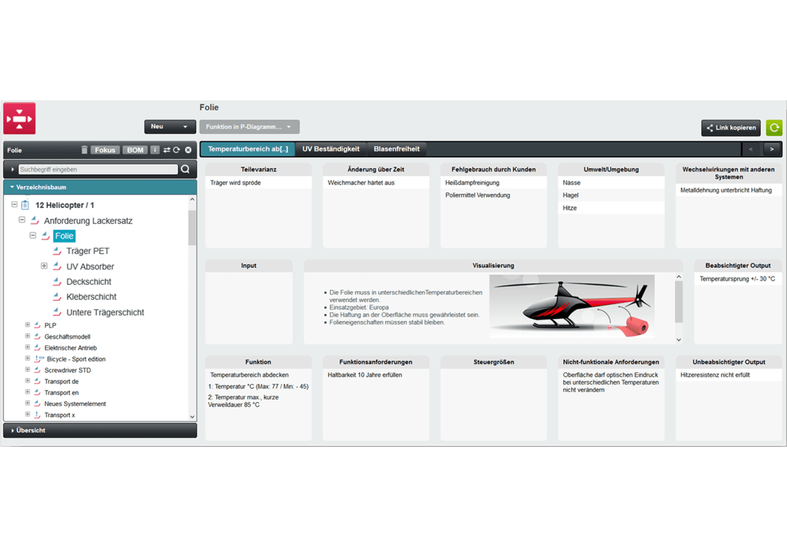 • Multiple use: Results from the parameter diagram flow directly into the FMEA, significantly reducing duplication of work.